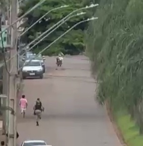 Logo após a queda, o jovem se levantou e tentou fugir a pé pela Avenida Hermenegildo José de Oliveira, desobedecendo às ordens policiais. Um militar iniciou acompanhamento, mas acabou sofrendo uma queda durante a perseguição, sofrendo lesões e danos no fardamento.
