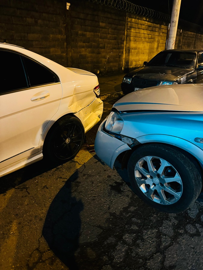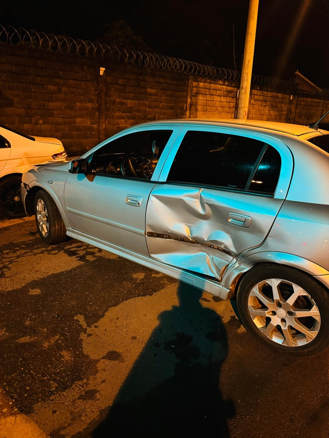 Ele então tentou puxar o freio de mão para tentar diminuir a velocidade, mas acabou rodando na pista e batendo na porta traseira do lado esquerdo do VW/Fox e com impacto da batida, o Astra foi empurrado para a lateral direita e bateu a roda direita traseira no meio-fio e na lateral traseira de um Mercedes Benz C200 que estava devidamente estacionado na via, gerando danos no para-choques traseiro, lateral traseira, lanterna traseira e na roda traseira.