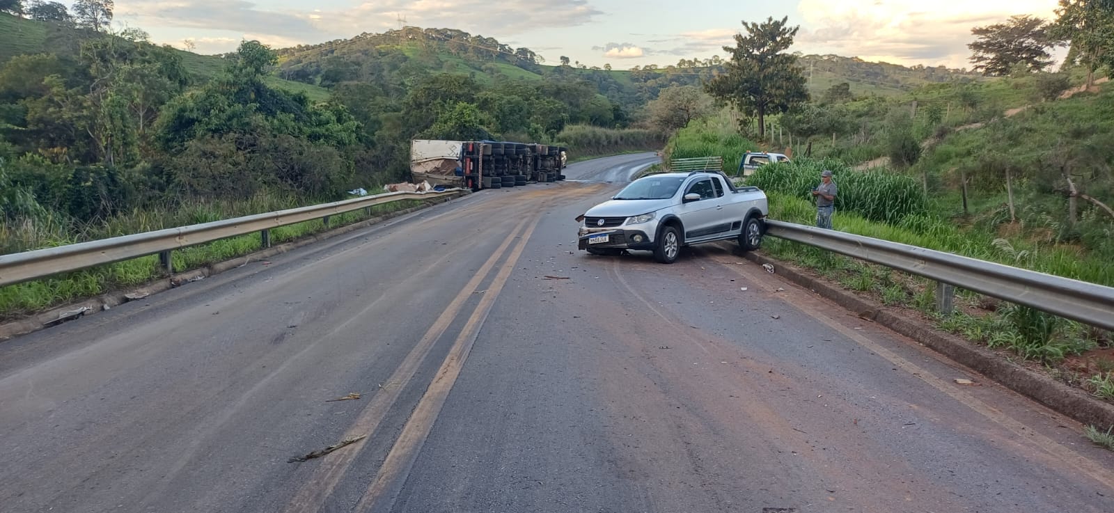 O motorista do caminhão, de 32 anos, relatou que seguia sentido Rio Paranaíba quando também visualizou o veículo com defeito mecânico na pista oposta e uma fila de carros à frente. Para evitar uma batida traseira, desviou para a contramão e acabou atingindo a Saveiro. Após o impacto, o caminhão tombou na pista.