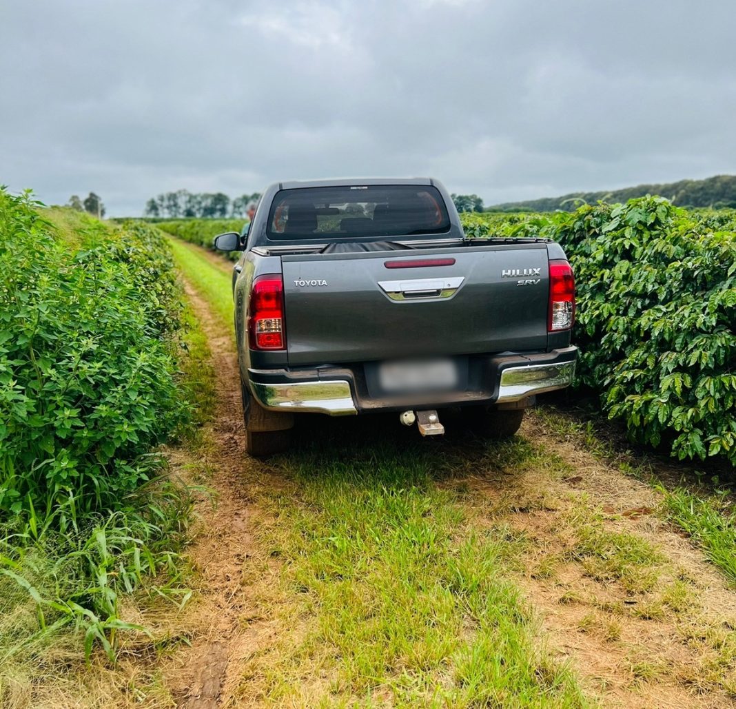Ao chegarem no local, eles encontraram a Toyota/Hillux no meio do cafezal. Em consulta ao sistema, ficou constatado que o veículo estava com queixa de furto em Uberaba, no Triângulo Mineiro.