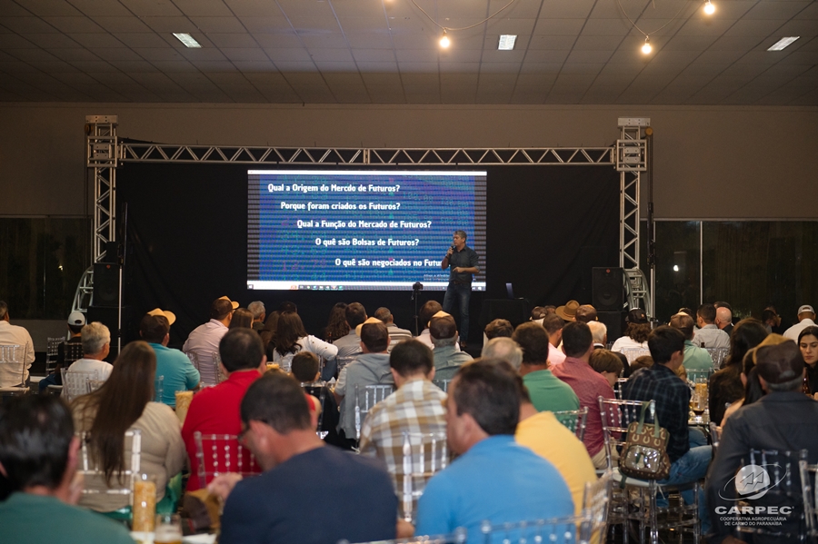 A palestra principal da noite foi conduzida por Leandro Bianchini, um especialista em Planejamento Estratégico e Gestão de Risco no Agronegócio. Com uma vasta experiência como Consultor Empresarial e professor universitário, Leandro falou sobre ‘Negociar boi na bolsa, tratamento de arroba garantindo a lucratividade no confinamento’. Sua abordagem prática e profunda cativou a plateia, oferecendo ferramentas essenciais para a gestão eficiente no setor. Além disso, ele também abordou hedging na bolsa de valores, fornecendo insights valiosos sobre como proteger investimentos e maximizar lucros em um mercado volátil.