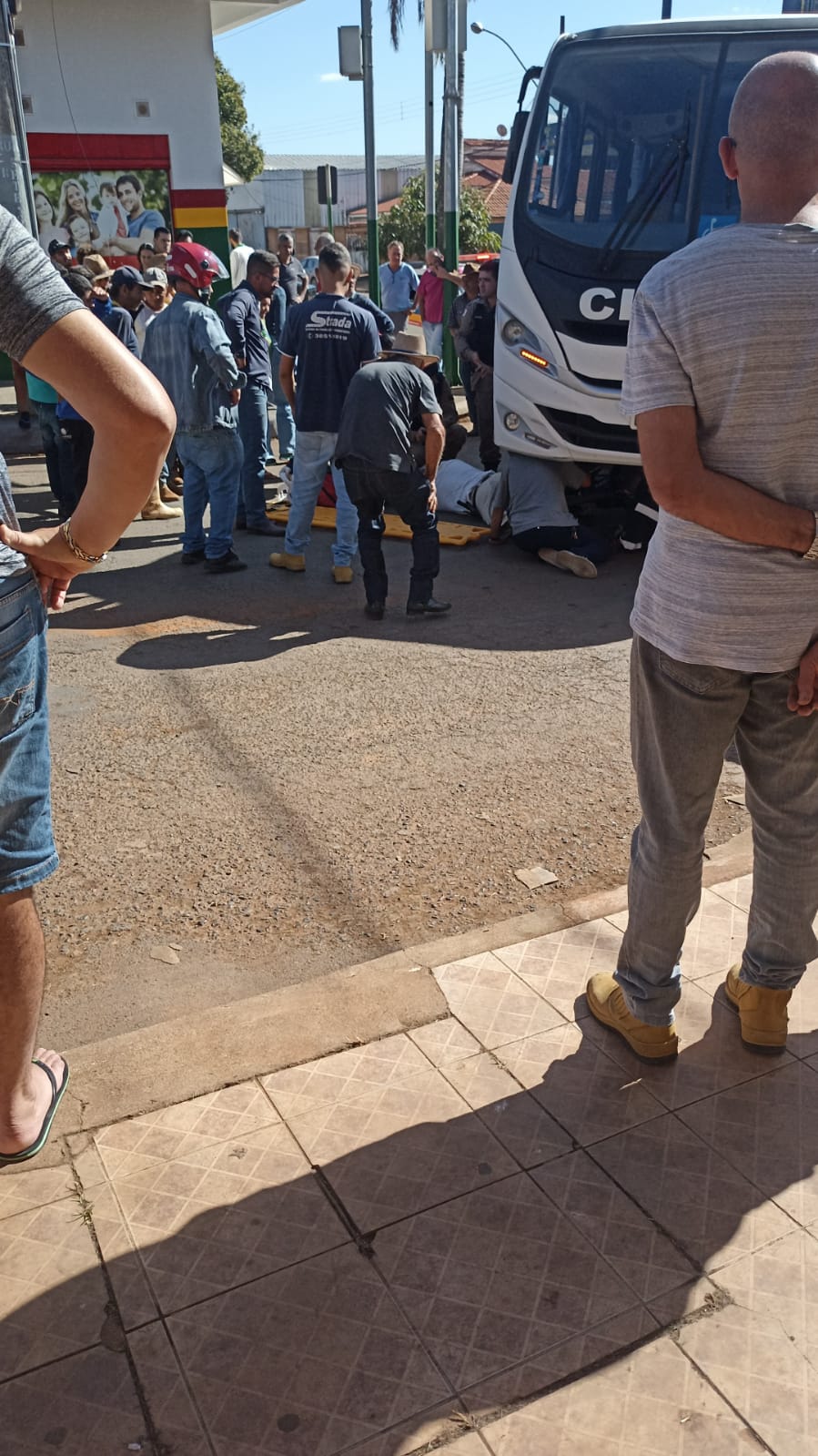 Ciclista vai parar debaixo de microônibus após ser atropelado em Carmo do Paranaíba
