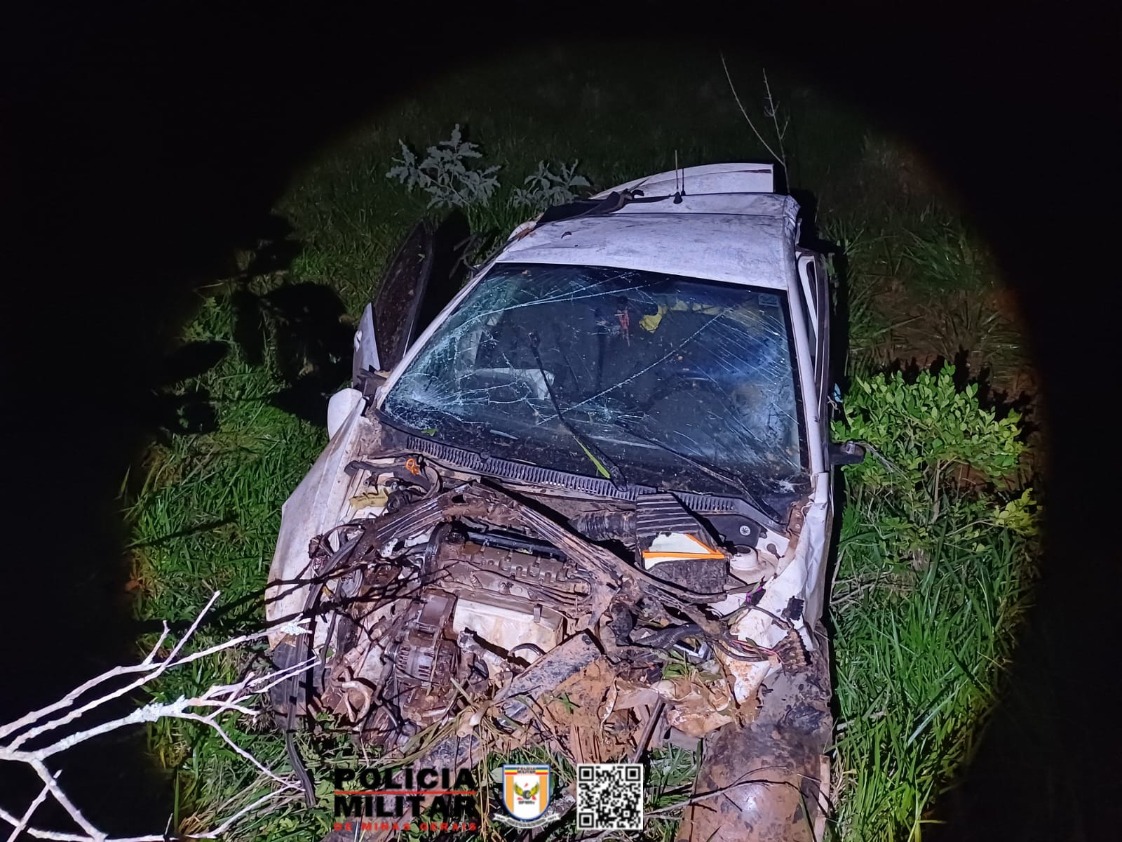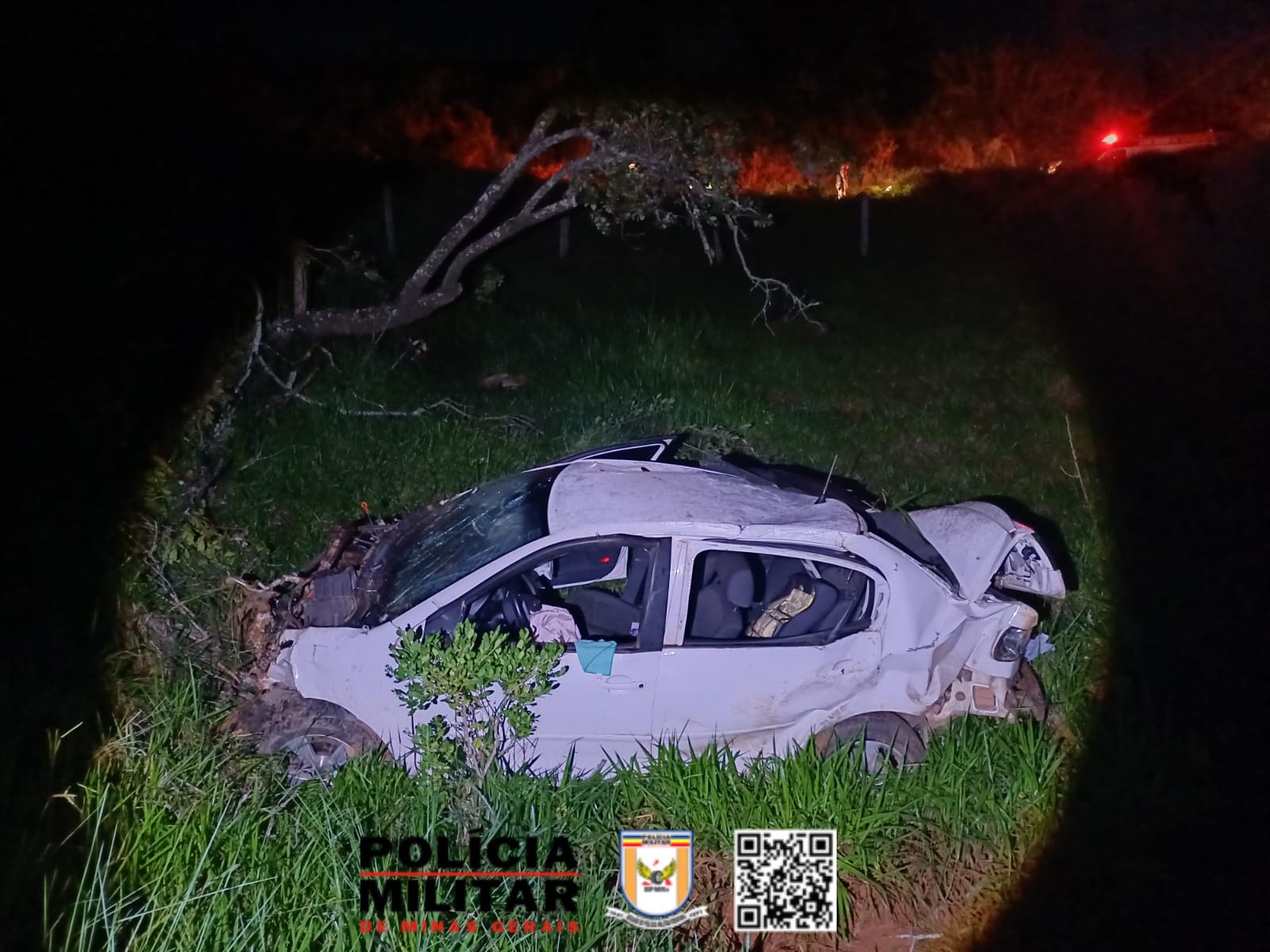 De acordo com o registro policial, o condutor, identificado como I.F. dos S.O., de 23 anos, seguia no sentido Guarda dos Ferreiros/São Gotardo quando perdeu o controle do veículo. Sem saber explicar o motivo, ele relatou que o automóvel saiu pelo lado esquerdo da via, capotou e parou fora da rodovia.