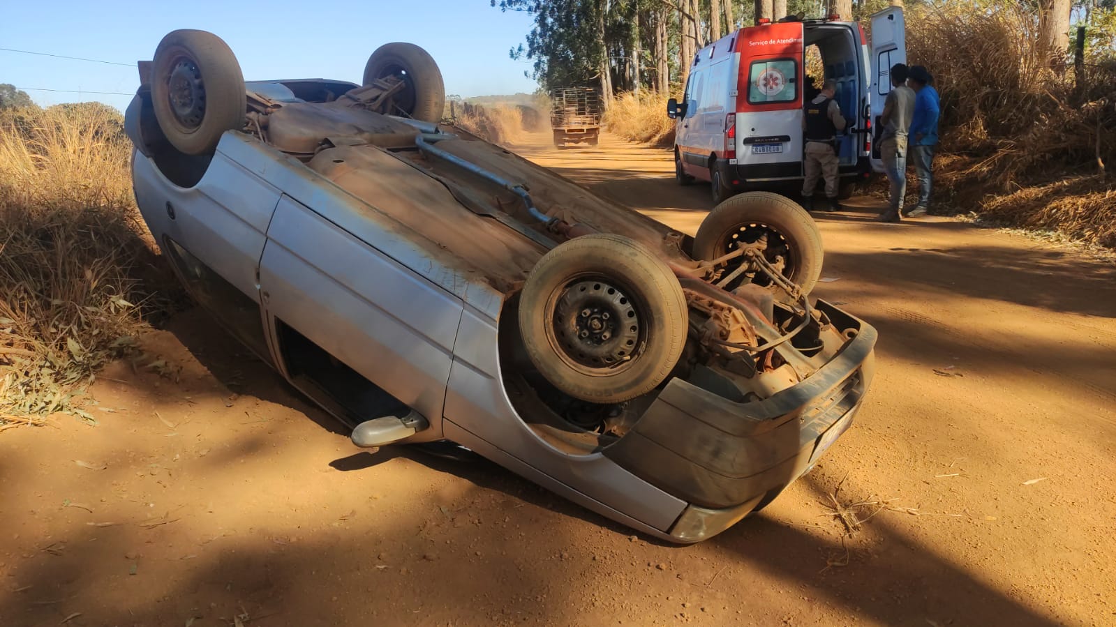 Condutora perde controle de veículo e capota em estrada vicinal na zona rural de Carmo do Paranaíba