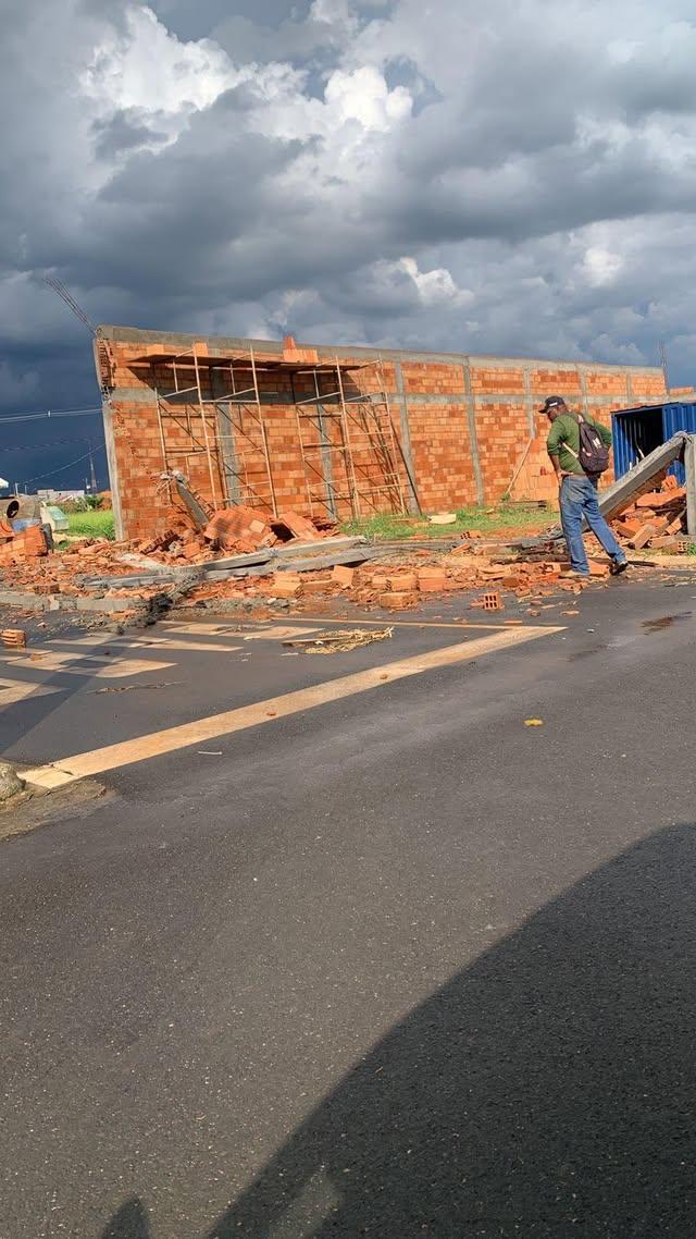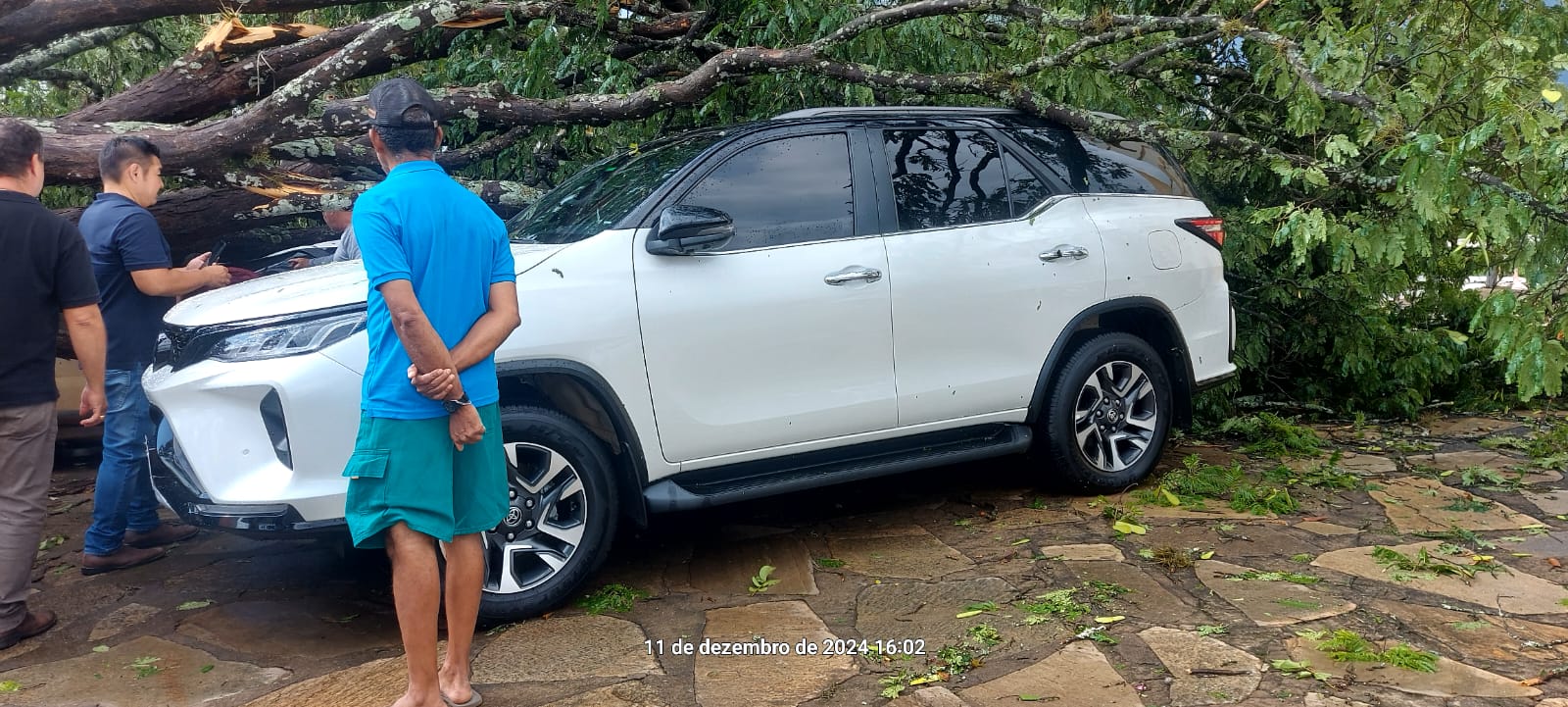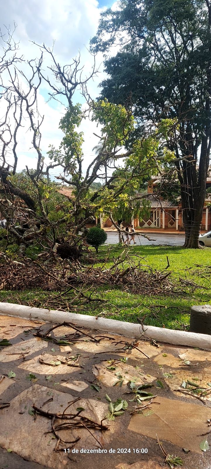 Na Praça Central, diversas árvores foram derrubadas com a força dos ventos. Uma grande árvore que ficavam ao lado da Igreja Matriz de São Francisco das Chagas caiu e danificou diversos veículos que estacionamento no local. Além disso, a barraca de lona onde estão realizados diversos eventos e a feira do produtor aos domingos também foi atingida pelos galhos.