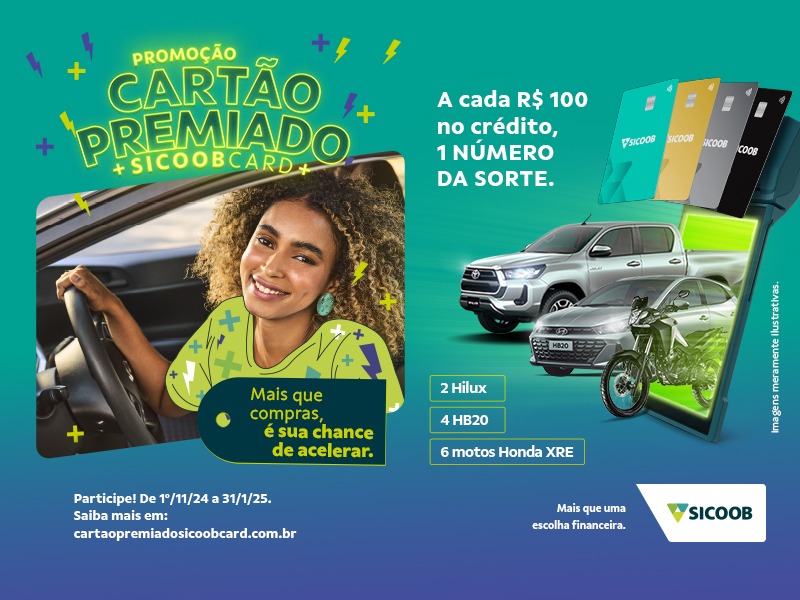 A cada R$ 100 em compras no crédito com o Sicoobcard, o cooperado recebe um número da sorte. Para quem utiliza as maquininhas Sipag, a vantagem é ainda maior, pois as compras realizadas garantem cupons em dobro, potencializando as chances de ser premiado.