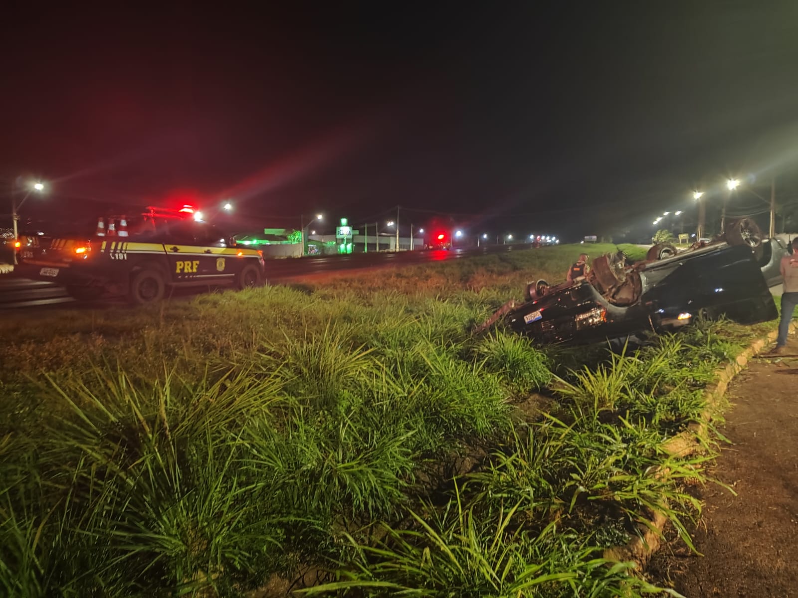 Ao se aproximar de um bloqueio policial montado na rodovia, o condutor tentou desviar e fez um retorno brusco. Nesse momento, o passageiro que estava no veículo saltou da caminhonete em movimento, caindo no acostamento e dispensando atendimento médico. Ele relatou aos policiais que o condutor apresentava sinais de delírio e que temia por sua vida durante a fuga.