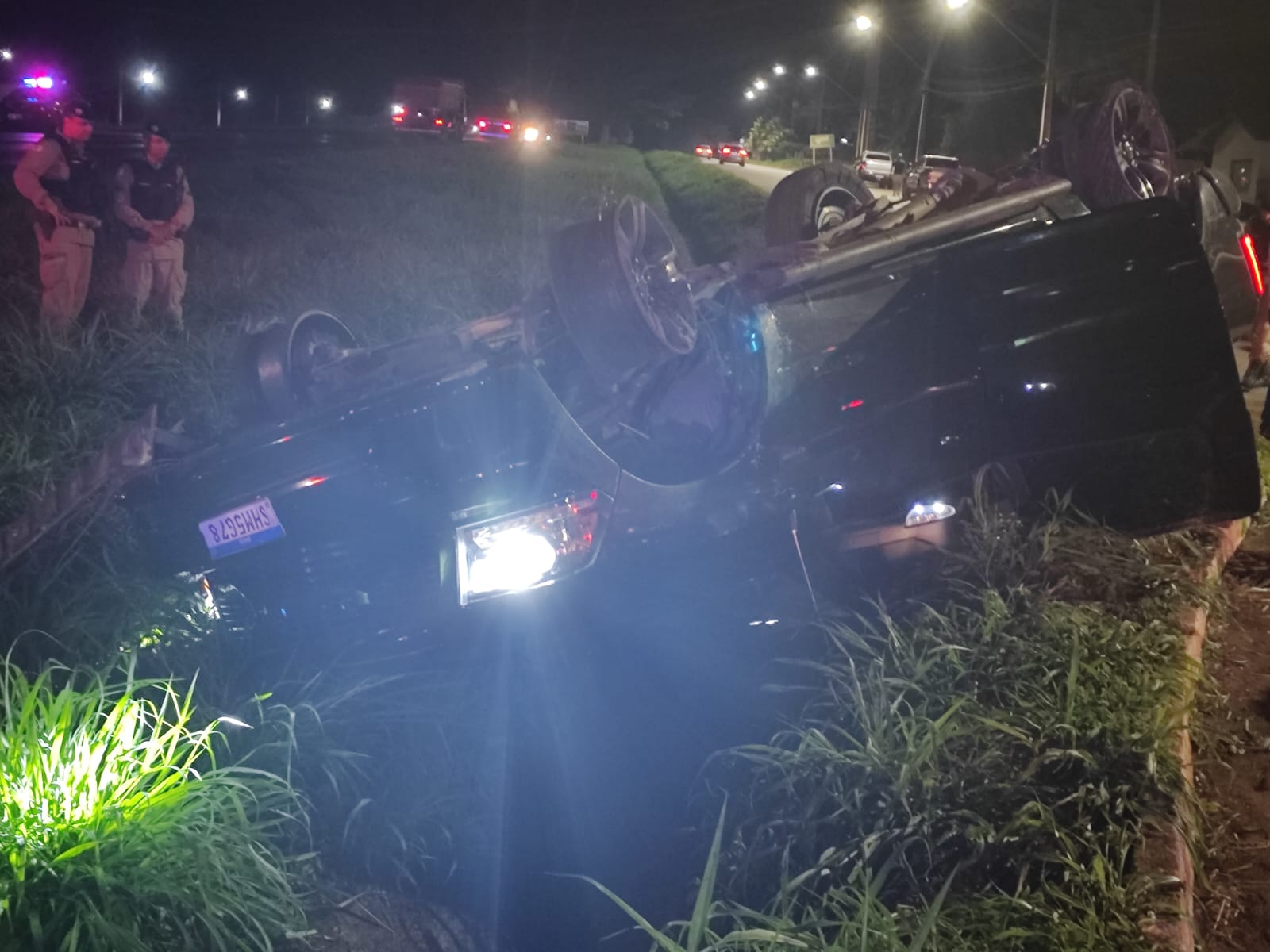 Logo após, o veículo passou sobre um dilacerador de pneus/redutor de velocidade instalado pelos militares, o que resultou na perfuração dos pneus. Na Avenida Rodrigo Castilho de Avelar, o condutor perdeu o controle e capotou a caminhonete. Durante a abordagem, ele apresentava sinais de uso de substância entorpecente, como inquietude, delírios e dilatação pupilar.