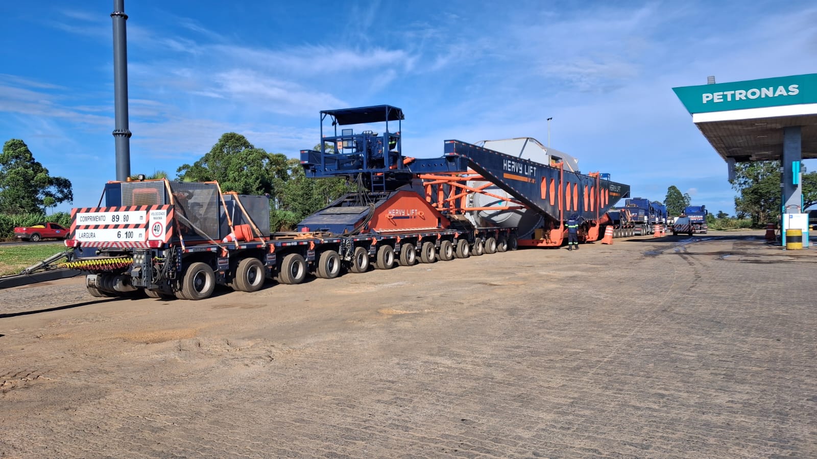 Devido às dimensões da carga — aproximadamente 108 metros de comprimento, 6 metros de largura e 5 metros de altura — o deslocamento ocorre em baixa velocidade e exige atenção redobrada dos motoristas.
