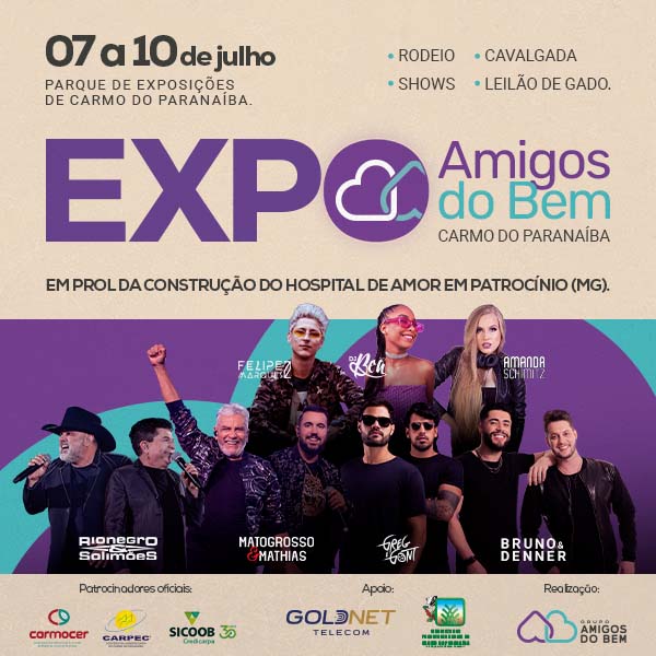 Até domingo (10), outros artistas também passaram pelo palco da Expo Amigos do Bem, como a dupla Matogrosso e Mathias; Bruno e Denner e Greg e Gont. Todos os dias terá boate com DJ Filipe Marques; DJ Bea e DJ Amanda Shimitz e rodeio na arena.
