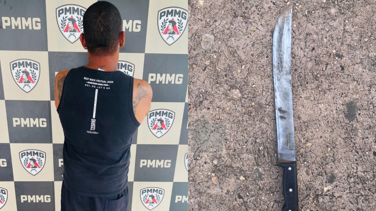 No momento mais grave da ocorrência, o homem pegou um facão e ameaçou matar a companheira. A arma utilizada na ameaça foi localizada pelos policiais no local dos fatos.