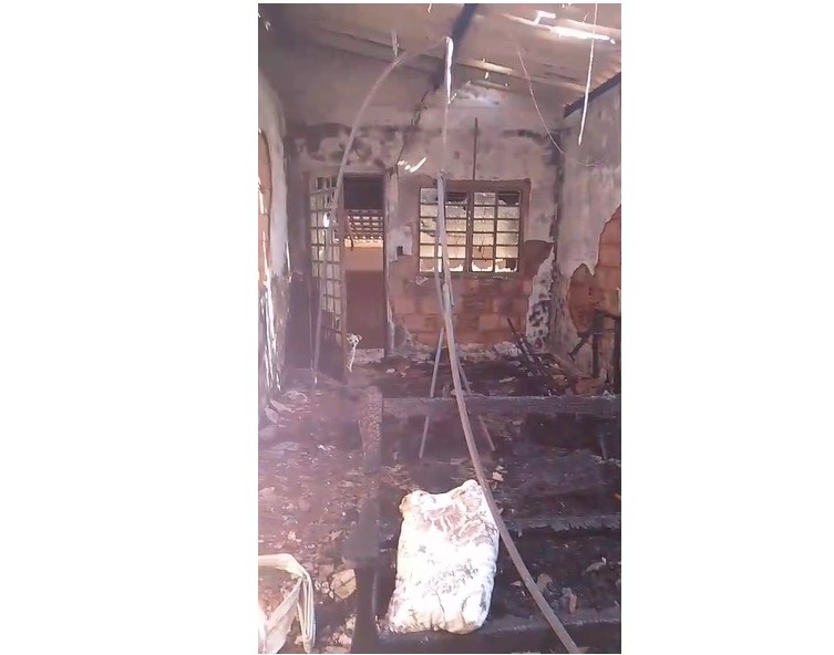 A perícia identificou que o incêndio foi iniciado com uso de combustível e um pneu, possivelmente colocados pelo suspeito na sala. As chamas causaram sérios danos estruturais à residência e fizeram um botijão de gás explodir, provocando rachaduras nas paredes e teto.
