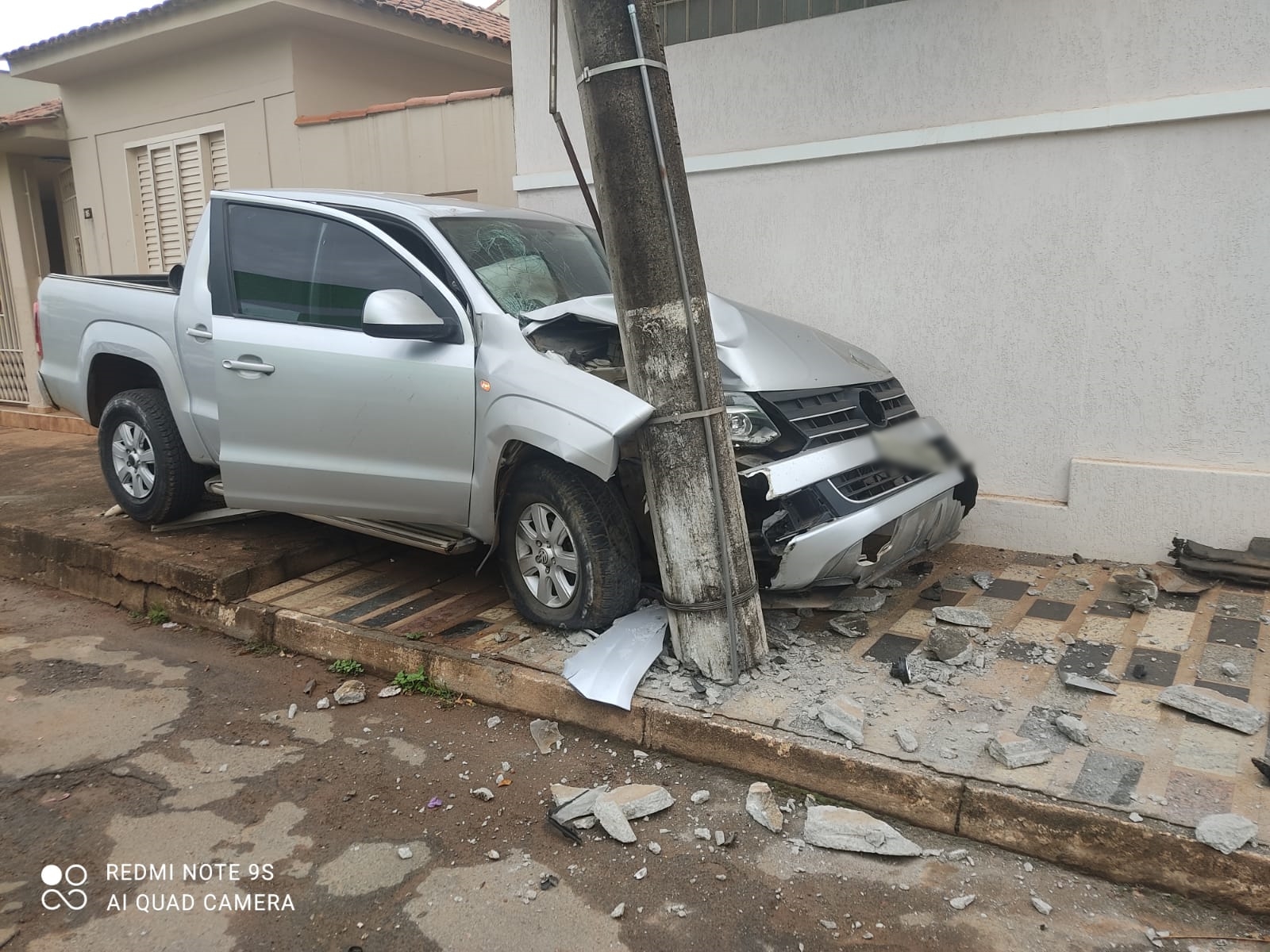 Uma caminhonete Amarok bateu contra um poste na Rua Santo Antônio no centro de Carmo do Paranaíba, na manhã desta segunda-feira (31) e por pouco não causa estragos maiores em residências e um a banco próximo ao local. De acordo com o boletim de ocorrência, o fato aconteceu no cruzamento com a Rua Lenheiros, por volta das 07h40, quando o condutor de 62 anos perdeu o controle direcional, vindo a subir no passeio e bater contra o poste de iluminação.