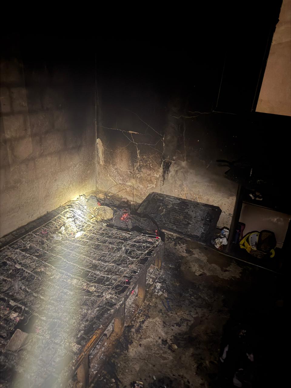 O incêndio consumiu uma cama de solteiro, colchão, rack de televisão, uma TV e algumas peças de roupa. A estrutura da residência não sofreu danos severos, embora tenha sido registrado dano parcial no madeiramento do telhado do quarto e na fiação elétrica do cômodo, que não possui laje.