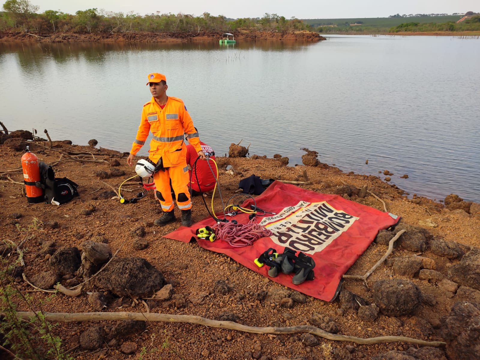 A Polícia Militar, o SAMU e o Corpo de Bombeiros foram rapidamente acionados e as buscas se iniciaram ainda durante a tarde. Mergulharadores do 12° BBM de Patos de Minas realizaram mergulhos no local indicado pelas testemunhas, porém, não lograram êxito em localizar o corpo do jovem.