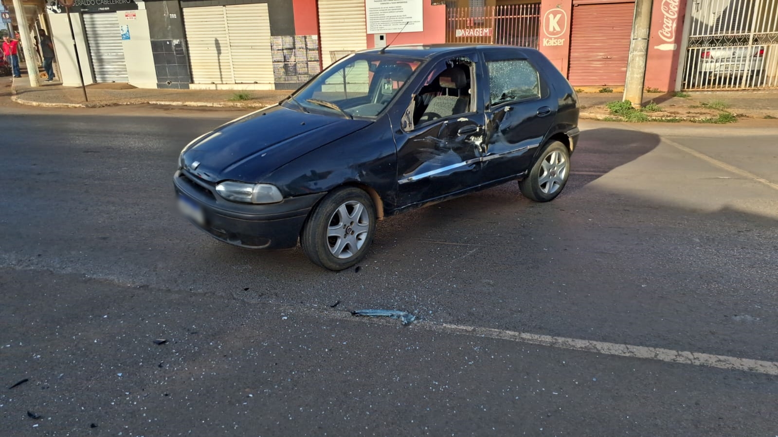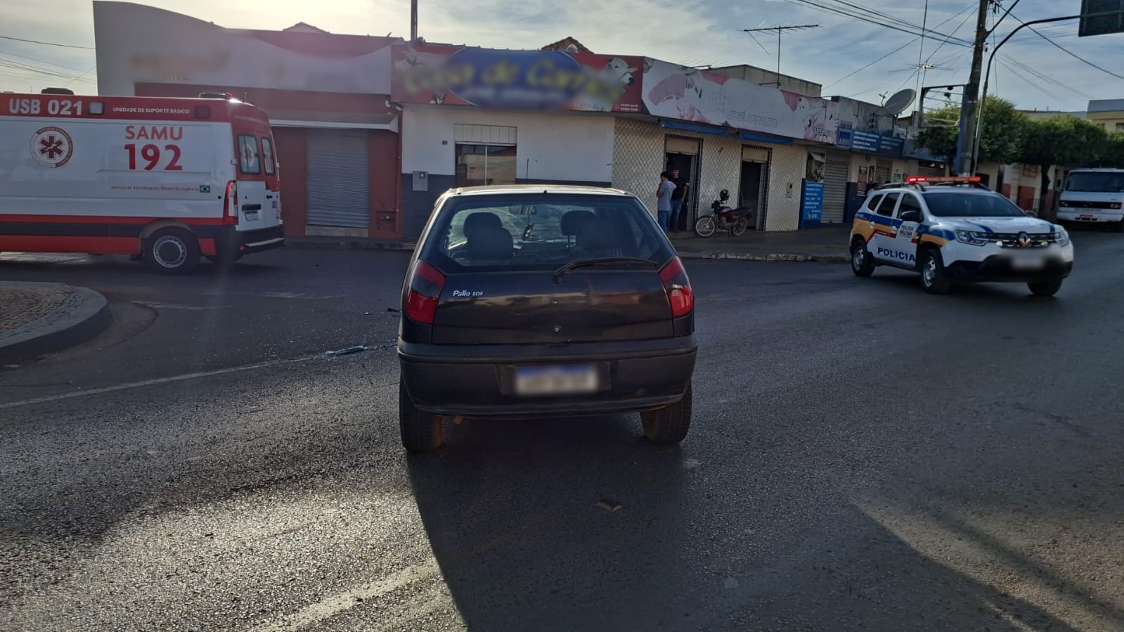 Diante disso, a motocicleta foi liberada ainda no local por estar com a documentação regular e o carro foi removido para o pátio credenciado, já que não tinha condições de trafegabilidade devido aos danos na porta do motorista, vidro quebrado e por ter perdido o retrovisor.