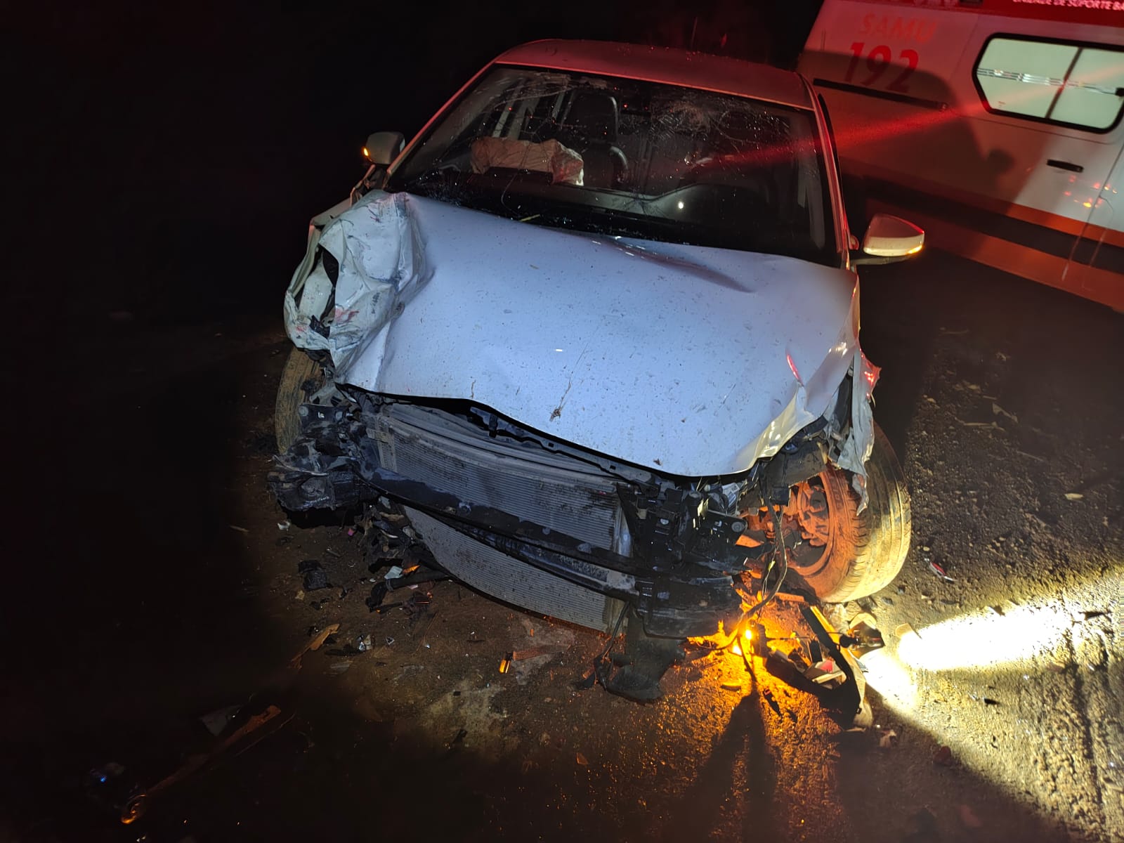 O condutor do Golf sofreu escoriações na cabeça, mas recusou atendimento do SAMU. Já o motorista da Saveiro não apresentou ferimentos aparentes.