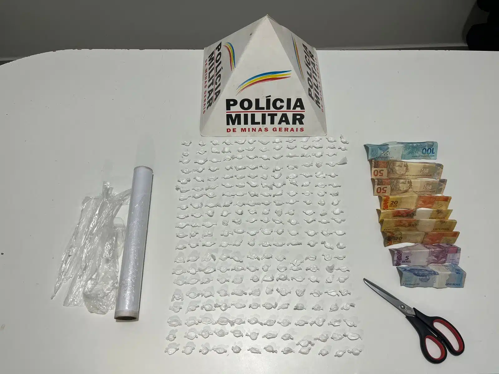 Ao todo, foram apreendidos 242 papelotes de cocaína, R$ 287,00 em dinheiro e materiais para preparo e embalagem das drogas. O menor foi encaminhado para a Delegacia de Polícia Civil de Patrocínio.