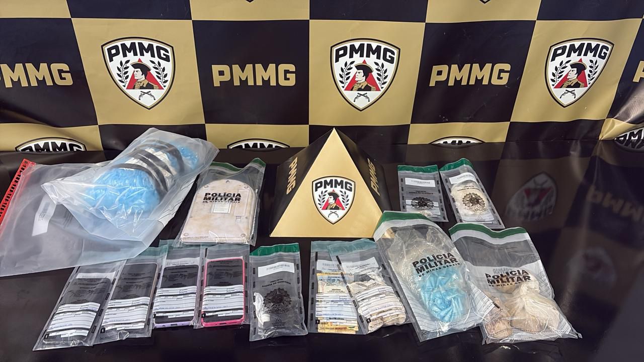 Com isso, foram apreendidos os seguintes materiais: 16 pedras de substância análoga a crack; 5 porções de substância análoga a maconha; 100 pinos de substância análoga a cocaína; 1 balança de precisão; embalagens utilizadas para fracionamento de drogas, além de aparelhos celulares.
