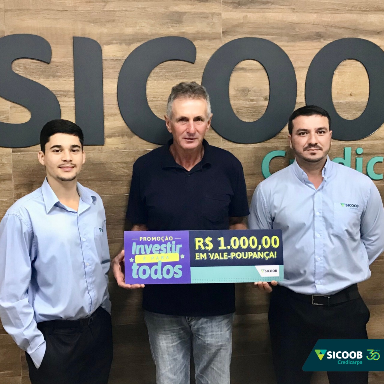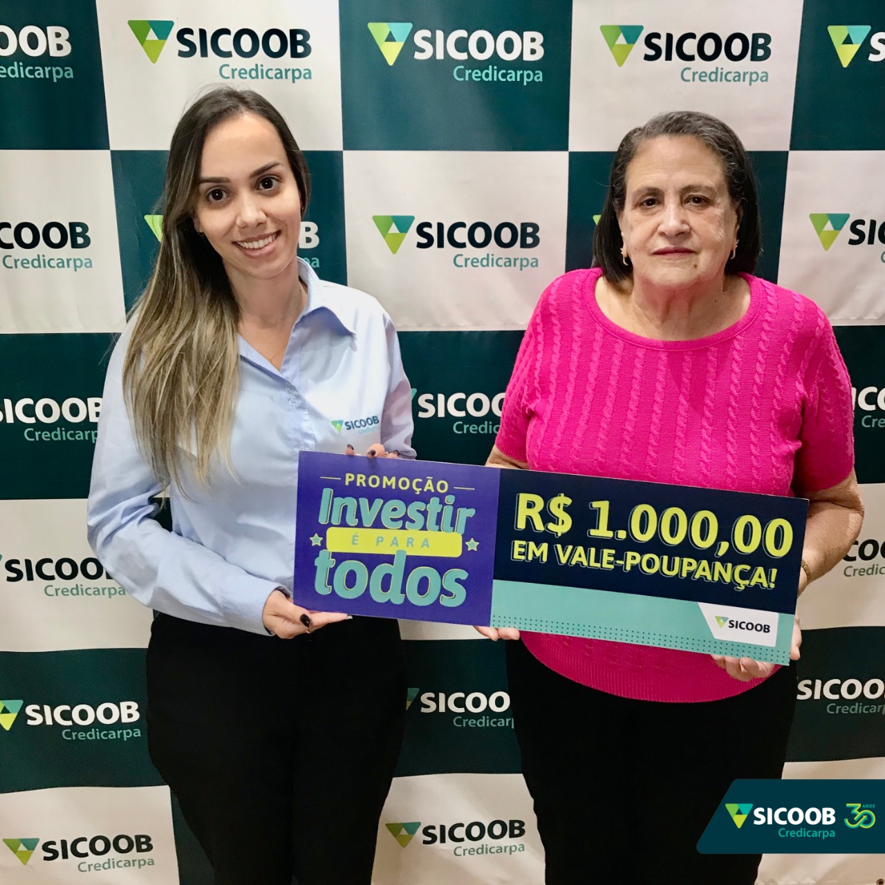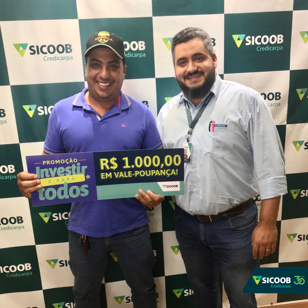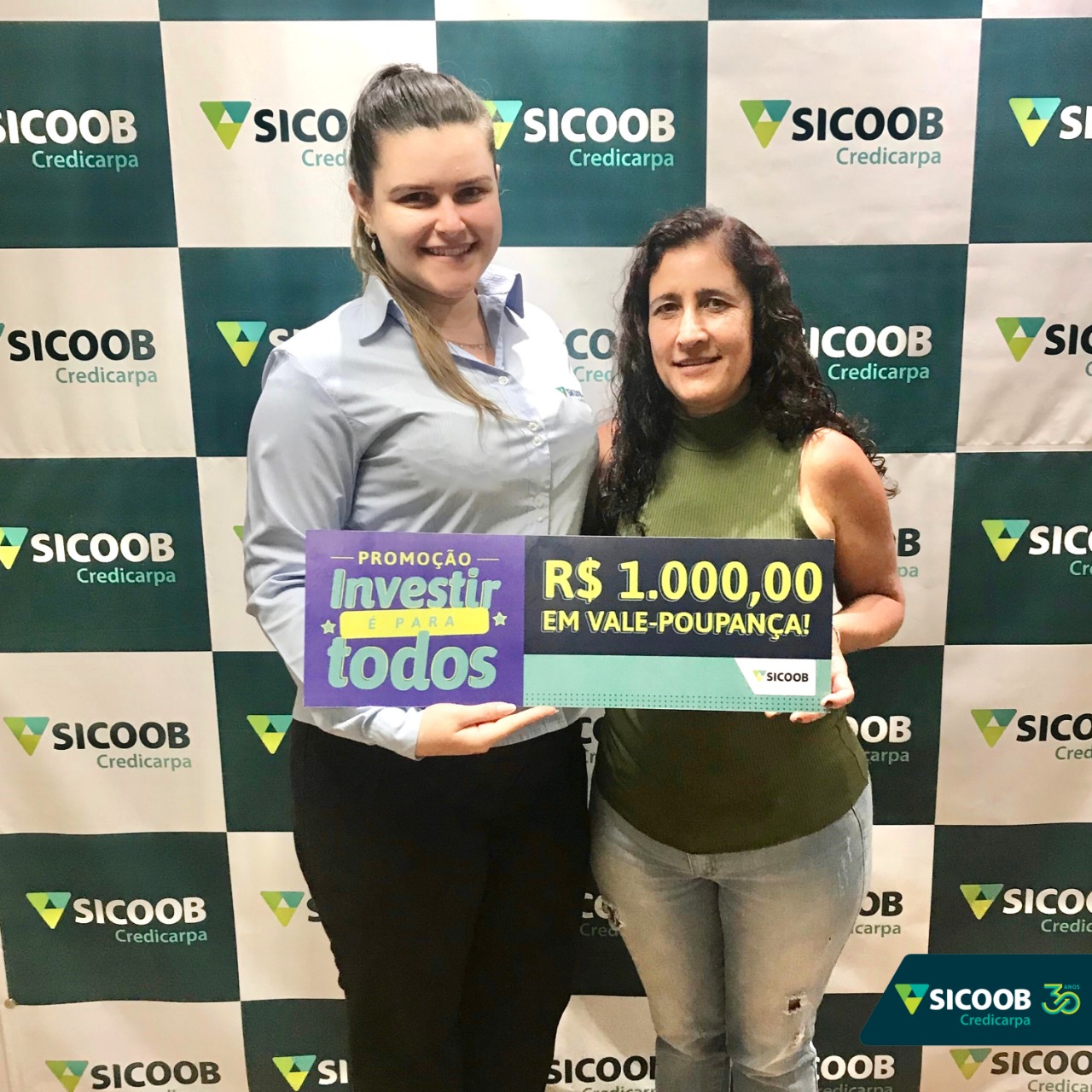 A promoção foi dividida em dois sorteios. No primeiro, dois cooperados e sete poupadores do Sicoob Credicarpa foram contemplados, levando para casa R$ 1.000,00 em vale-poupança.