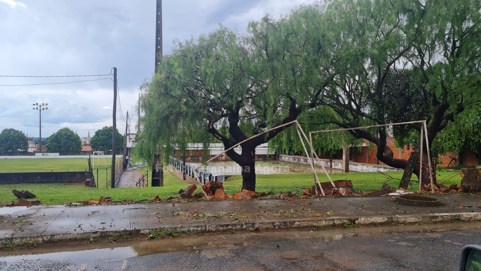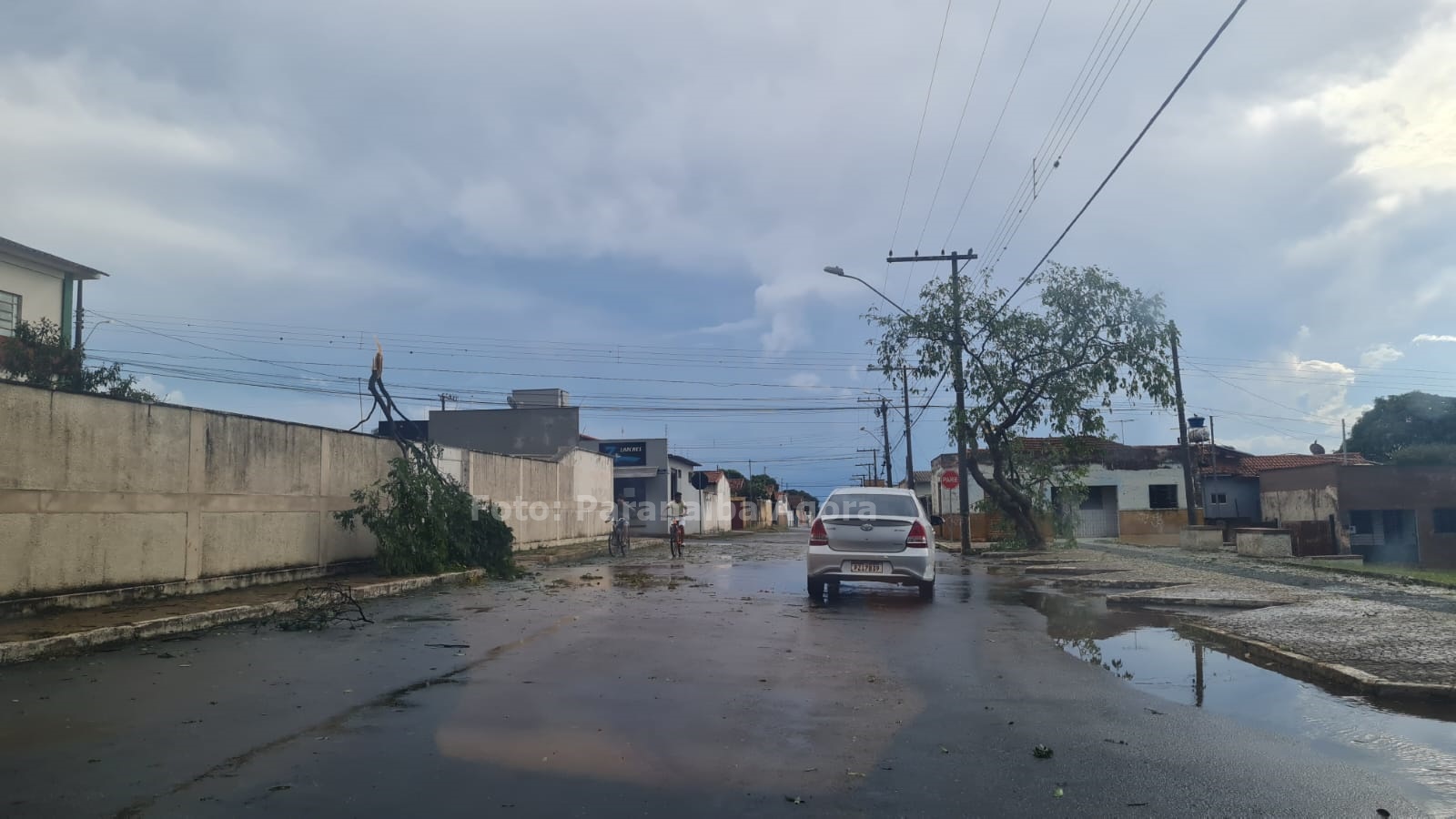 Muros de diversas casas e estabelecimentos caíram, telhas, estruturas e árvores foram arrancadas Além disso, carros foram arrastados e a fiação no centro da cidade se partiu ao meio.