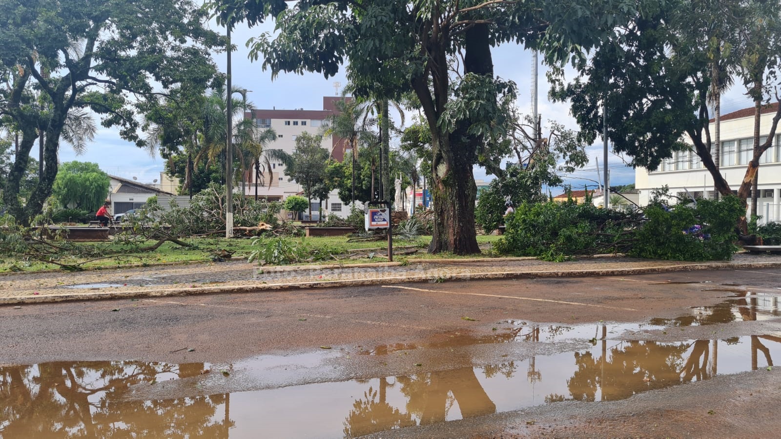As ruas ficaram cheias de lixo, areia e folhas e muitas pessoas ainda contabilizam os estragos. Diversos comerciantes estão realizando a limpeza dos seus estabelecimentos, uma vez água os invadiu.