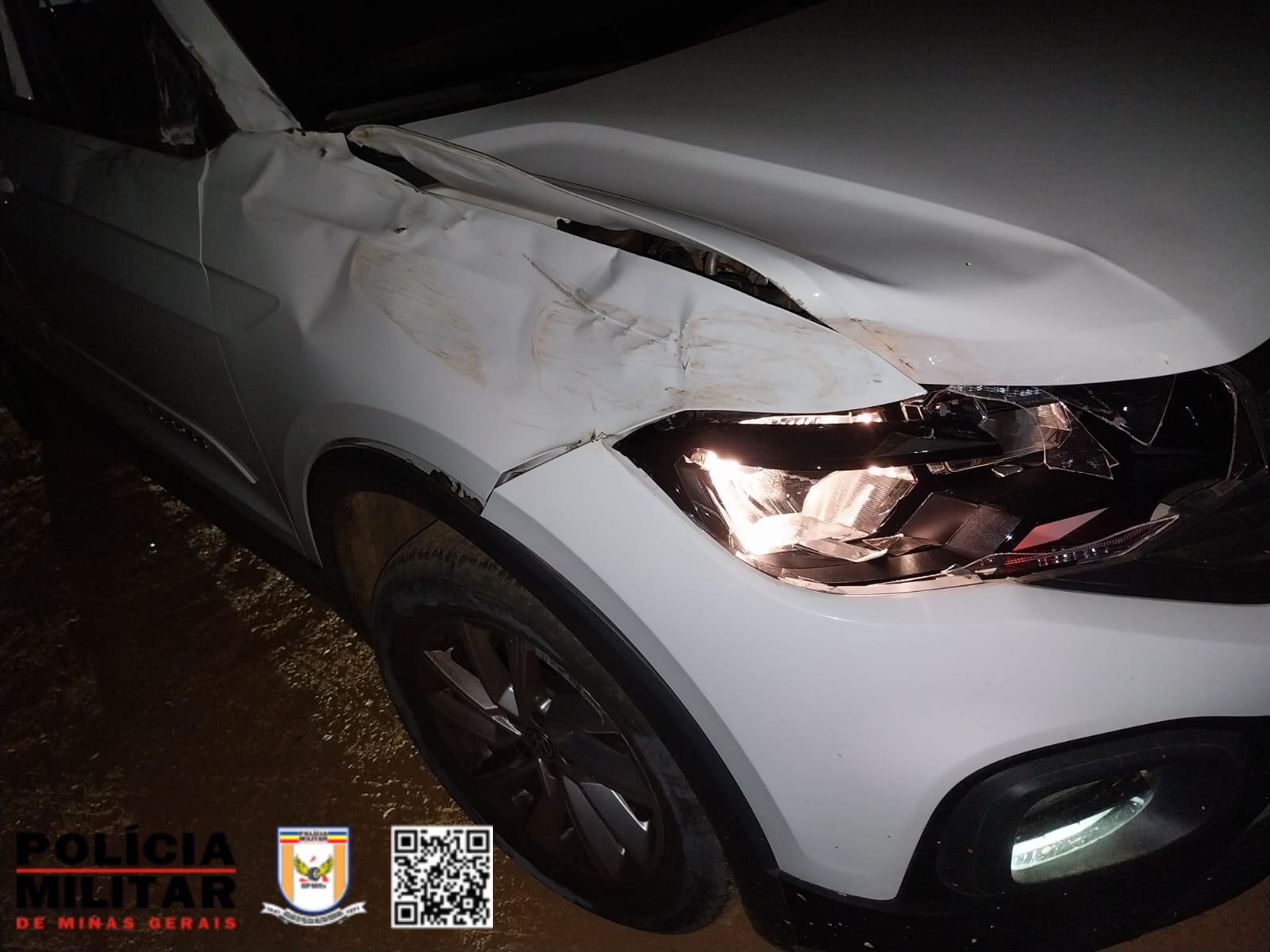 Com isso, os condutores do Fiat Mobi identificado como A.M.M., de 42 anos e do VW T-Cross, identificado como W.A. de M., de 66 anos, tiveram a visão suas visões ofuscadas por um veículo que seguia no sentido contrário e colidiram na transversal com o trator.