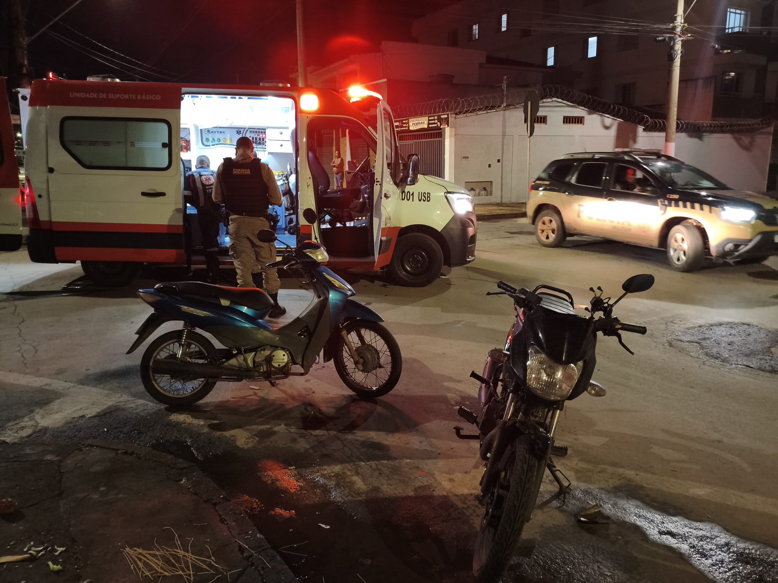 De acordo com a Polícia Militar, um motociclista de 25 anos conduzia uma Mottu/Sport 110cc pela Rua Rui Barbosa quando avançou a parada obrigatória e atingiu uma Honda/Biz que seguia pela via preferencial. Com o impacto, os dois condutores foram arremessados ao solo.